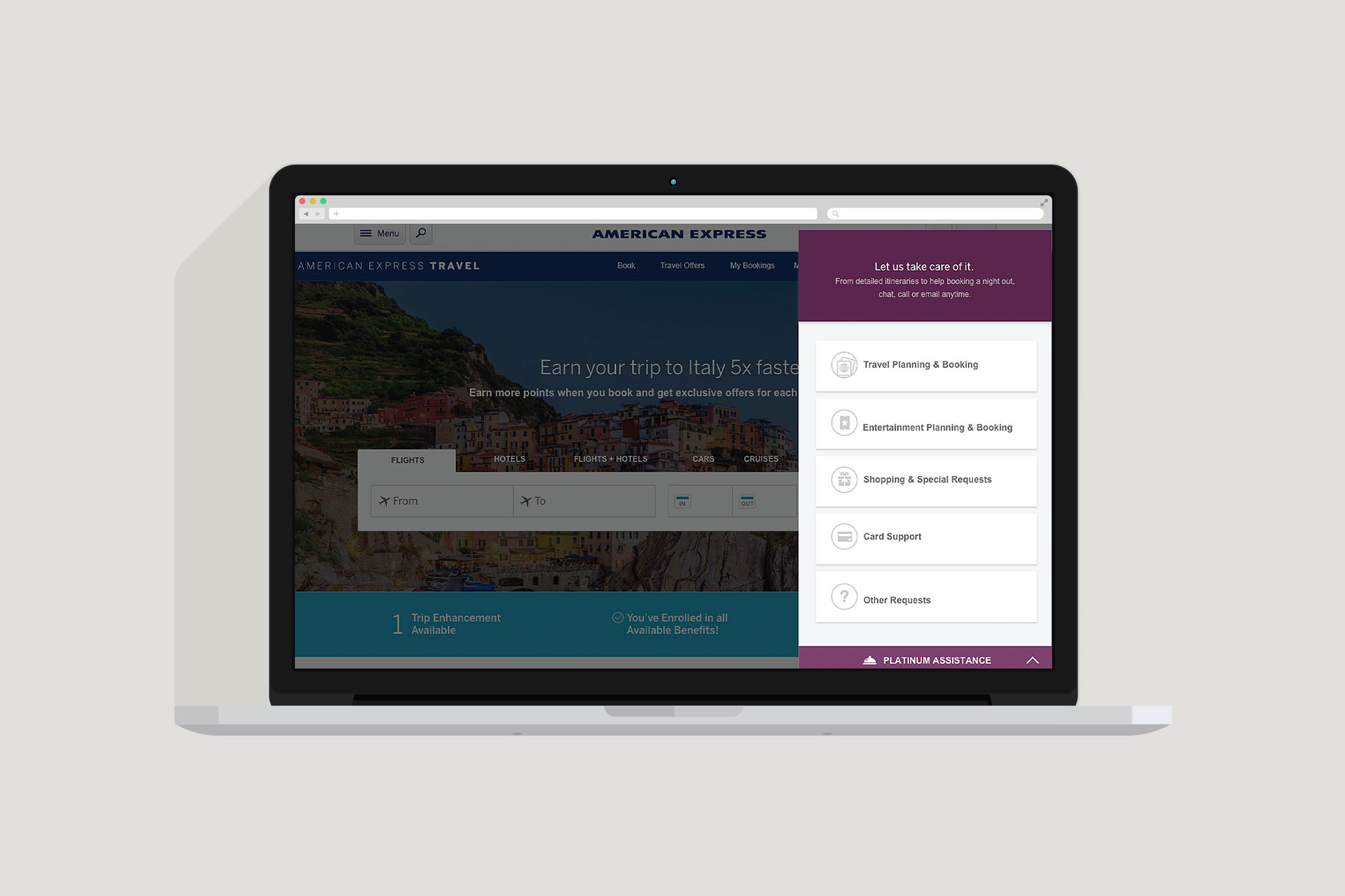 Two rounds of qualitative research with Platinum customers were conducted to surface gaps, insights and opportunities, as well as validate the final design and content solutions. The final strategy delivered content guidelines, a personalization strategy, recommendations and screen prototypes. The comprehensive strategy helped informed the brand’s larger communication relaunch last year. The new enhanced trip itinerary offers trip perks and enhancements in context (a hotel room upgrade, a hard-to-book restaurant reservation, an available airport lounge, etc.) based on travel preferences and history. The new chat bot feature helps better direct customers to the right assistance channel, whether this be booking questions, site help or Concierge service.