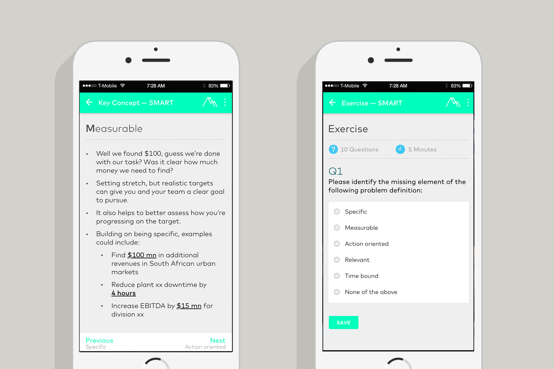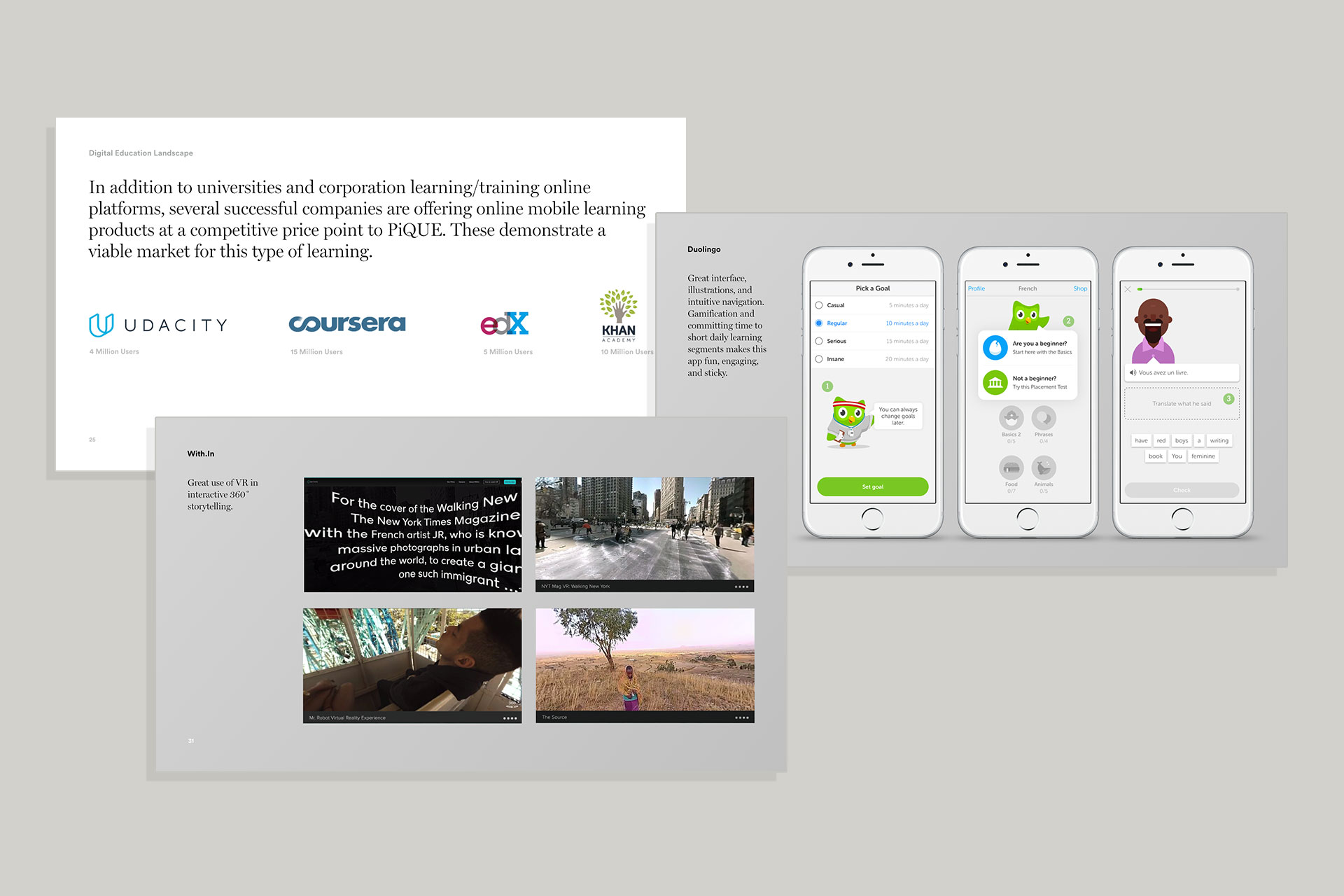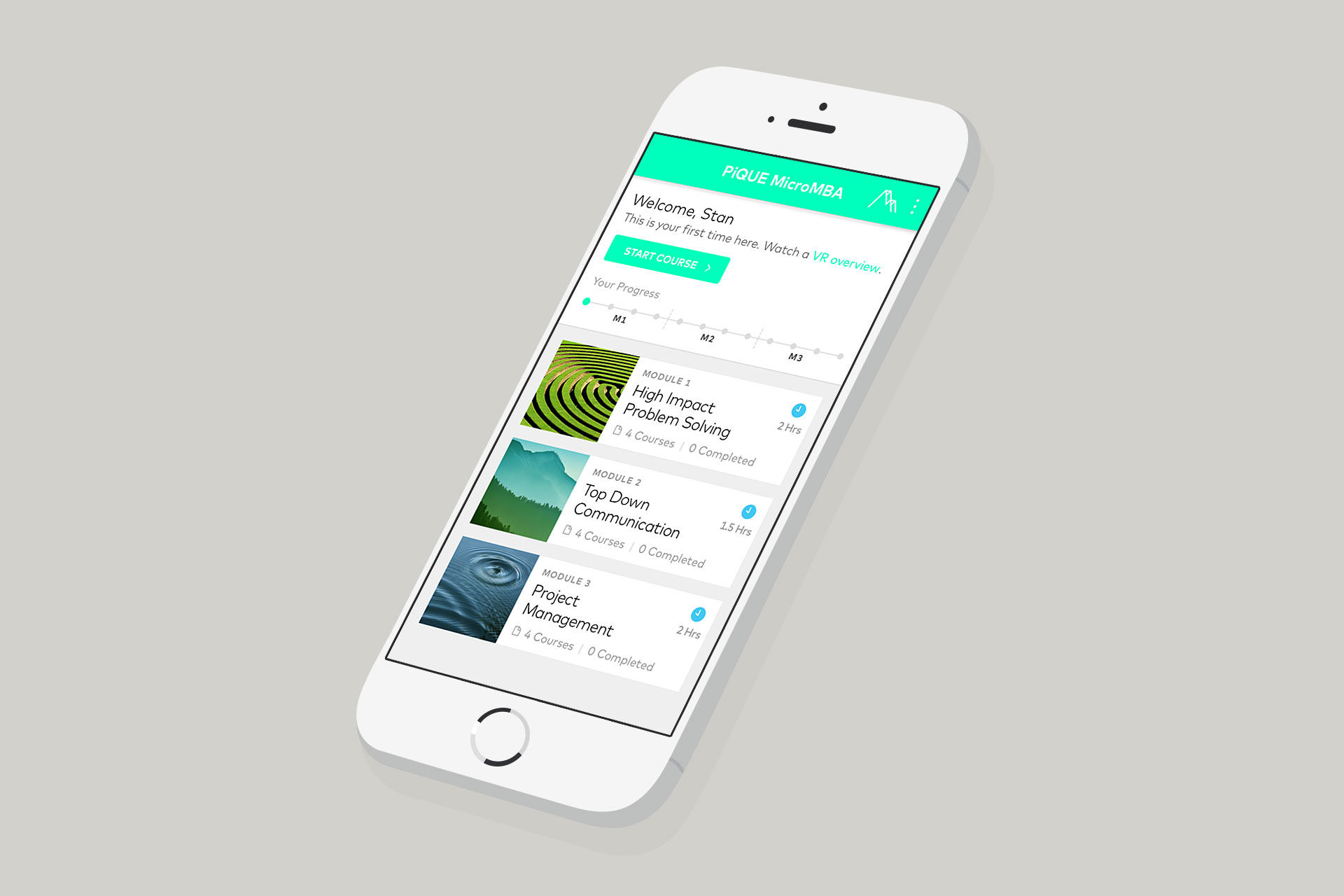 The concept was based on snackable, on-to-go training, much like Duo Lingo. To launch in 8 weeks, the agile process started with a deep design sprint, then a series of development sprints. While a more custom education platform would be developed if the alpha test validated the concept, to get up and running quickly, the platform was built on EdX, an open source e-learning platform that could provide the course structure, lesson plan, quiz and progress tracking functionality. The native mobile app would serve as a companion to McKinsey's existing online training courses. Two customizations were included — VR training content using a third party API, as well as podcasts.