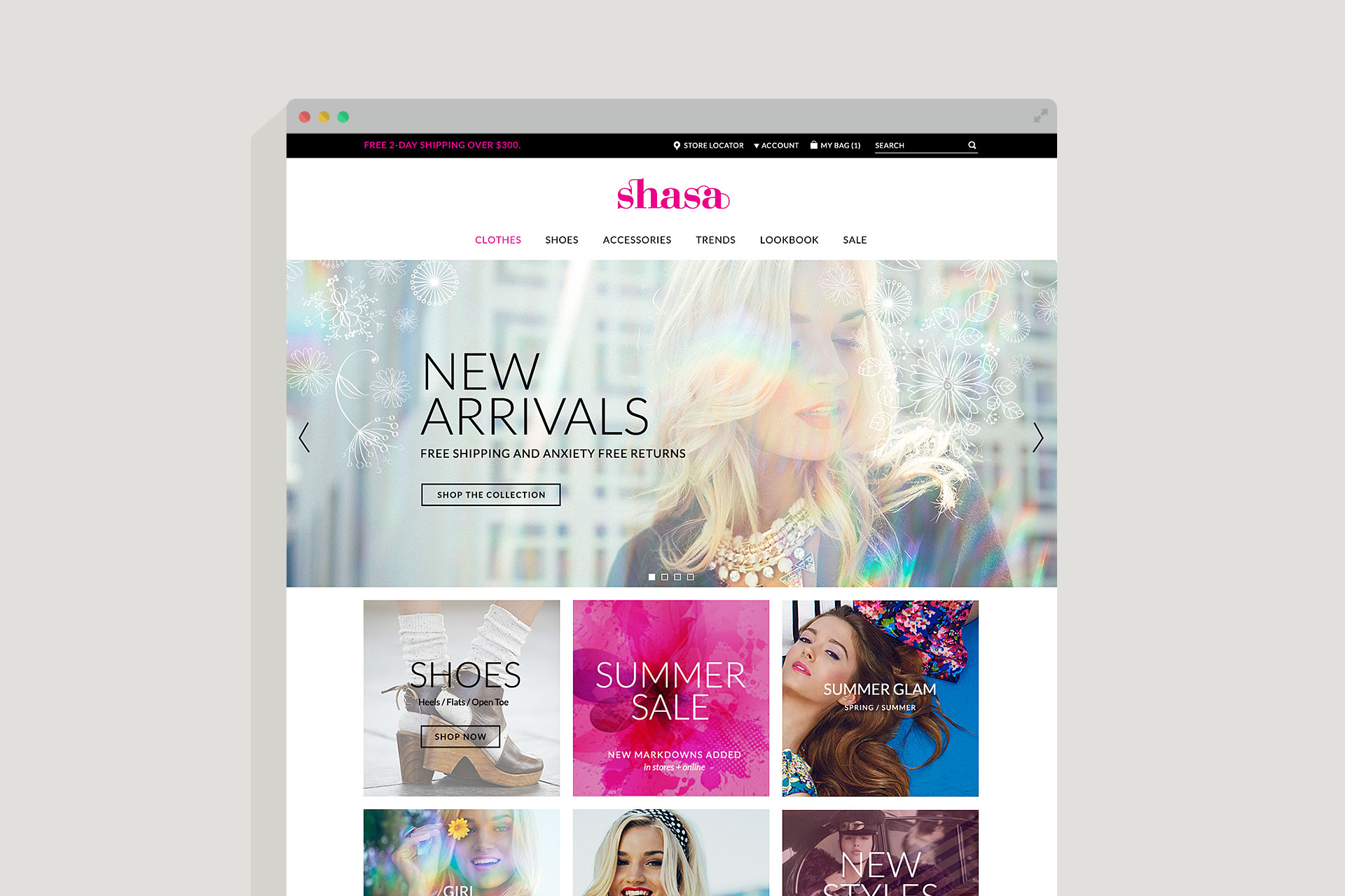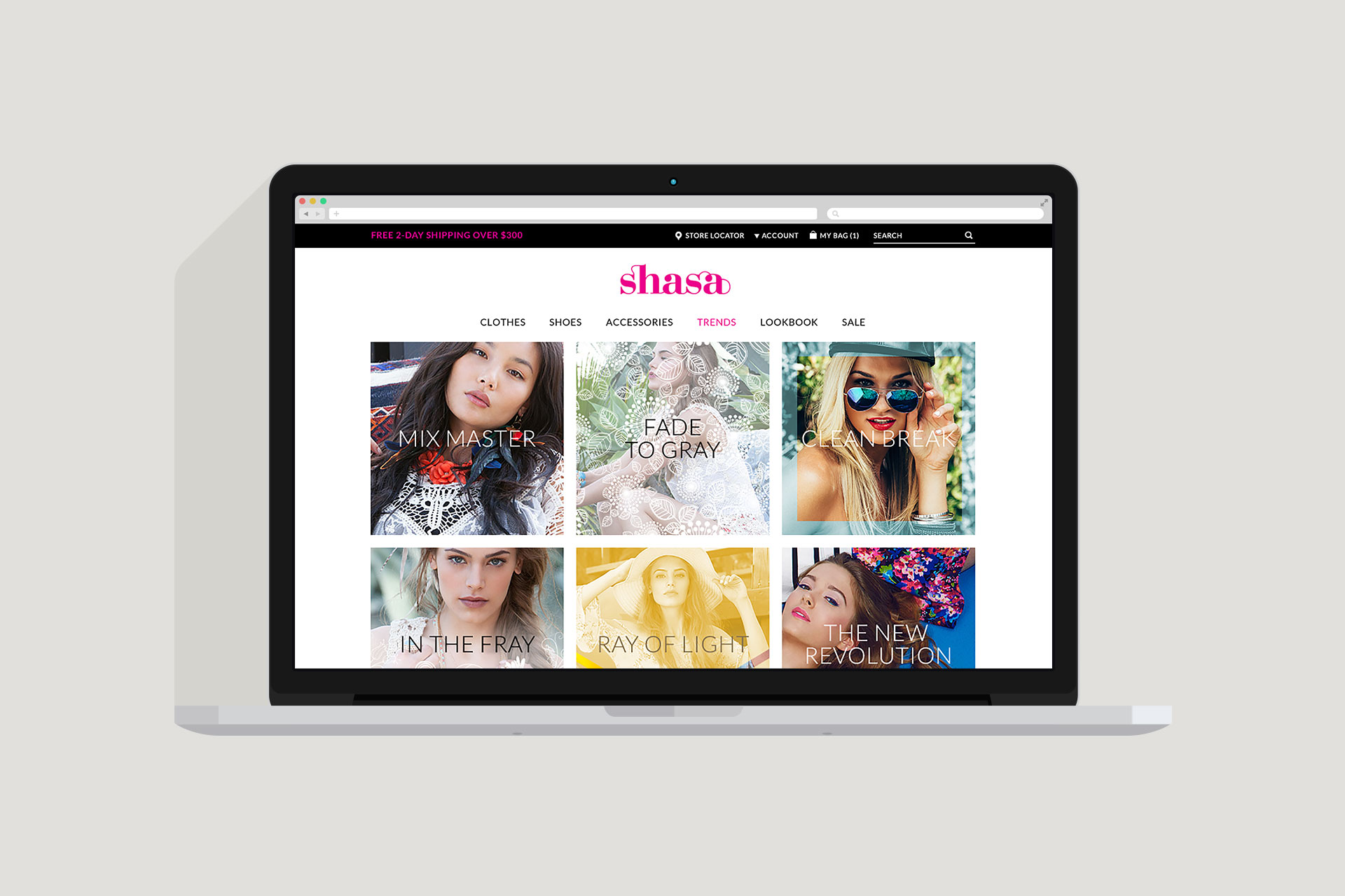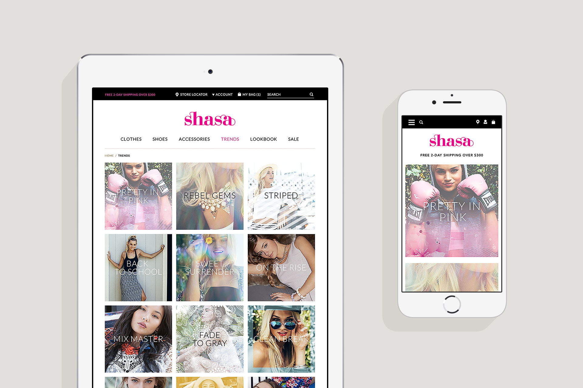 Shasa is a multinational retailer of womens and mens apparel, jewelry, accessories, beauty and footwear with over 92 store locations. The 25 year old company specializes in fast fashion, a constantly changing fresh inventory of merchandise that gets introduced monthly, even weekly. Shasa sought an ecommerce redesign on the Demandware platform to reflect their new branding and to support international commerce and localization. One key piece of the redesign was creating seasonal and trend looksbooks to create a more immersive catalog experience based on lifestyle photography.